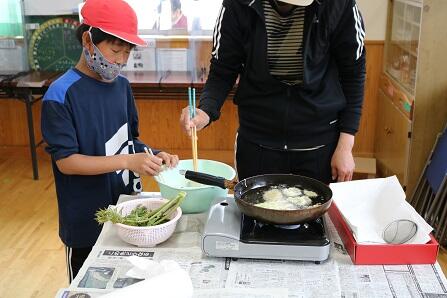 最後に山菜を天ぷらに調理しました。揚げたてで本当においしかったです。ごちそうさまでした。