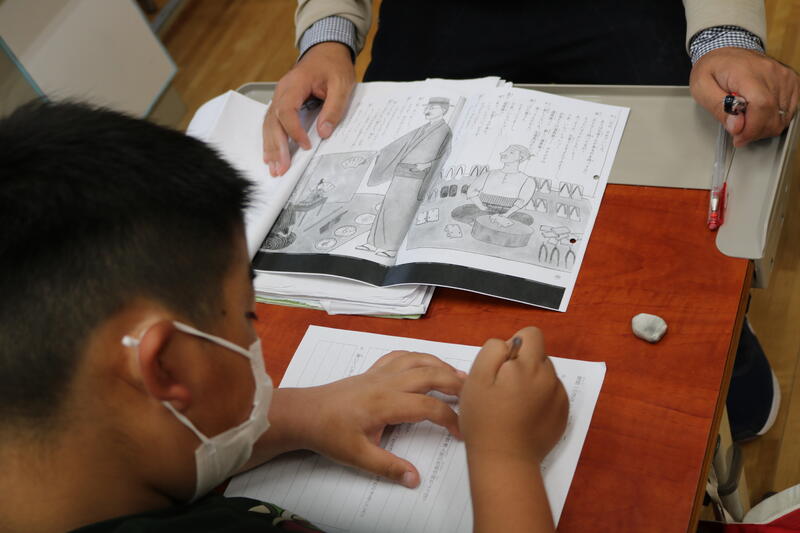 5・6年生の授業の様子です。お友達に誕生日を聞くという学習内容でした。