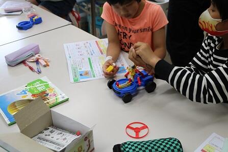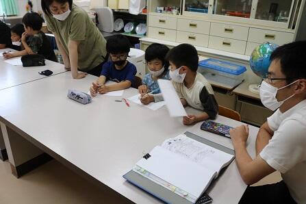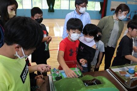 4年生は、理科で乾電池の向きとモーターの回り方の実験をしていました。理科の実験は楽しいようです。