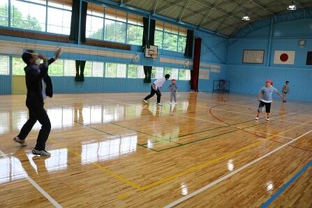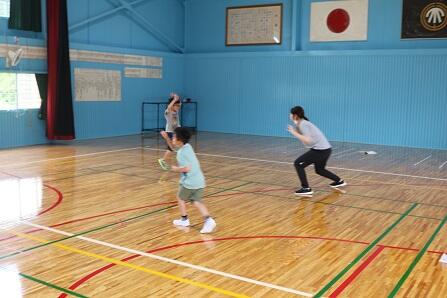 今日は、あいにくの雨でしたので、昼休みは体育館で遊びました。バレーボールやバスケットボール、バドミントンなどをして楽しく汗を流しました。