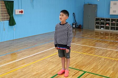 みんな元気よく大きな声なので、最初は本当に驚きました。校長先生が声の大きさを計測されているので、みんな自分の声の大きさを少しでも向上させようと頑張っています。