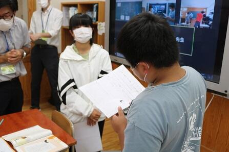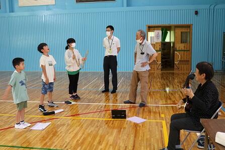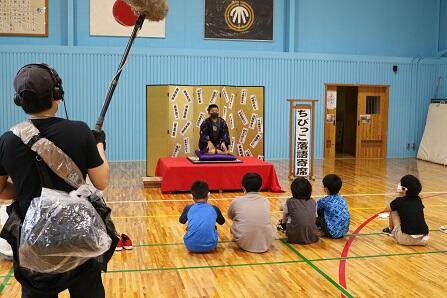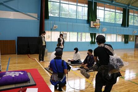 「元気な子ども達の様子」や「授業」、「落語」、「ひえつき節」などを撮影されました。そして、最後に子ども達や校長先生にある女優さんがインタビューされました。緊張気味の子ども達でしたが、頑張りました。