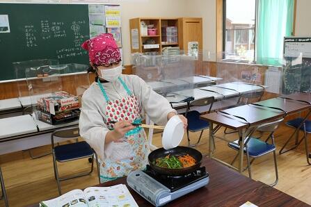スクランブルエッグやゆで卵、ほうれん草のおひたし、ゆでジャガイモなども美味しくできあがり、全校でいただきました。