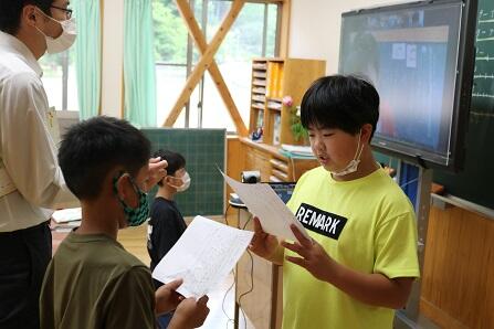 椎葉小学校に村内の3・4年生が集まり、集合学習がありました。
