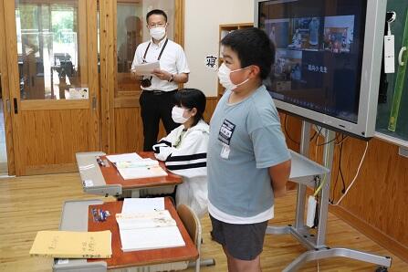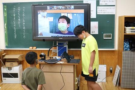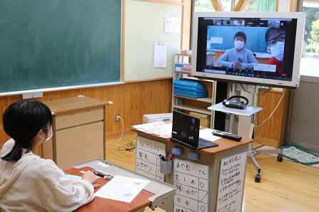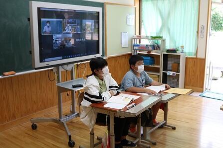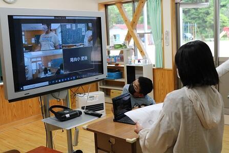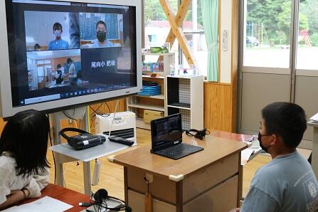 尾向小学校と不土野小学校で合同の「5・6年道徳科授業」を行いました。オンラインで2校をつなぎ、多様な考えに触れることで深い学びになることを狙ったものです。これは、今年度から重点的に取り組んでいこうとしているもので、今年度は、特に道徳科と社会科で取り組んでいきます。まだまだ課題がありますが、効果はかなり期待できると思います。