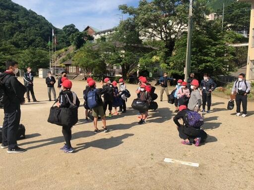 椎葉小学校での出発式の様子です。2泊3日の宿泊学習になります。ケガや病気無く、よい思い出をつくってきてほしいですね。