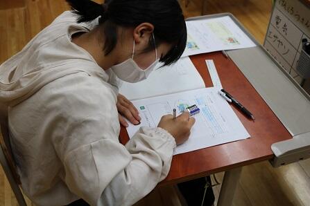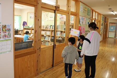 2年生が生活科で1年生のための学校探検資料を作っていました。1年生のために頑張っていました。