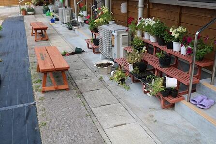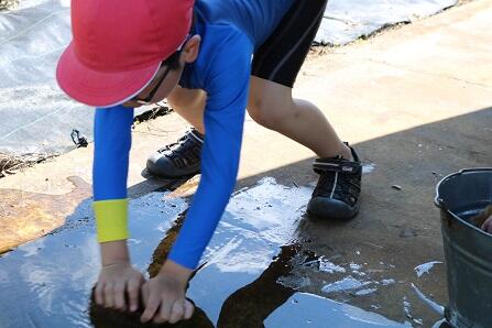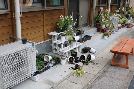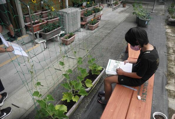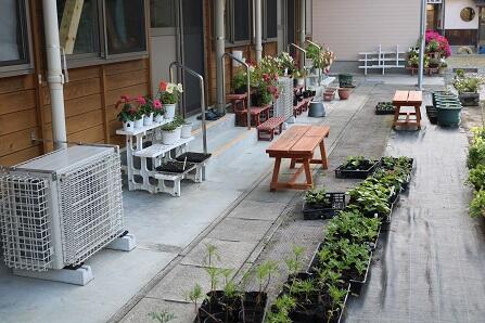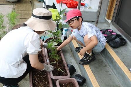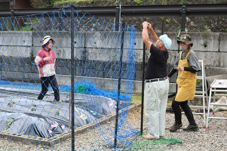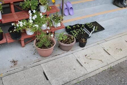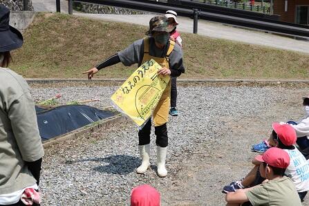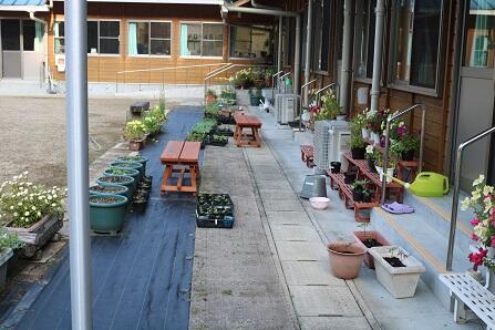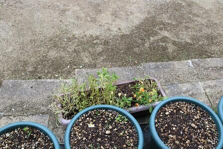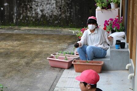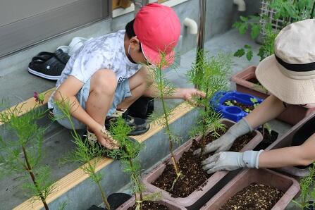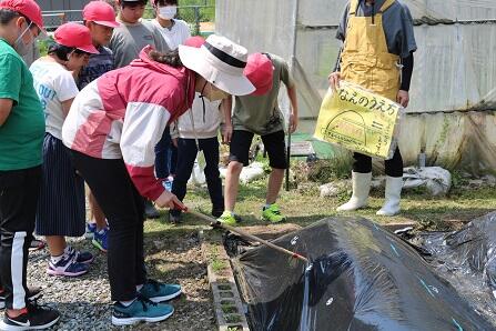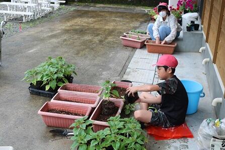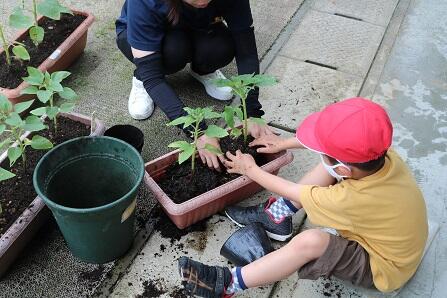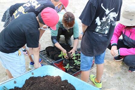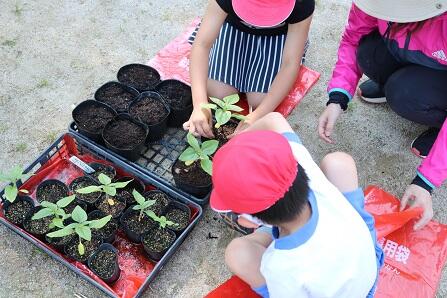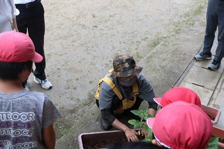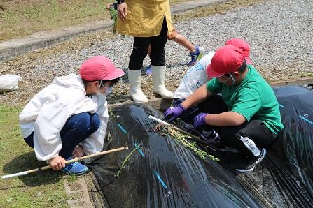 おまけ・・・外で4年生が理科でひょうたんを植えていました。