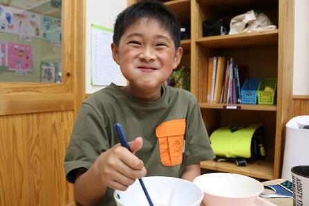 今日は、1・2年生の担任が出張のため1・2年生は自習でした。自習監督で入りましたが、二人とも楽しく粘土で作っていました。時々「これなんでしょう?」とか、「これは〇〇です~。」とか話しかけながらイメージを膨らませていました。算数や国語のプリントも頑張りました。