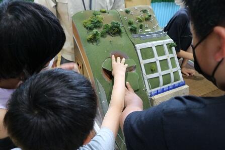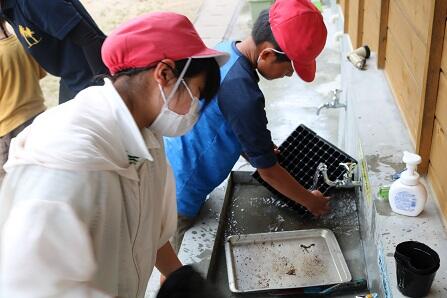 不土野小学校は、子どもたちと先生たちが一緒に安全点検を行います。