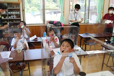 6月のH1グランプリ(はみがきナンバー1)の表彰を受ける児童