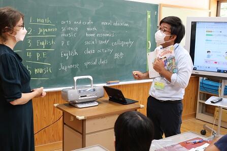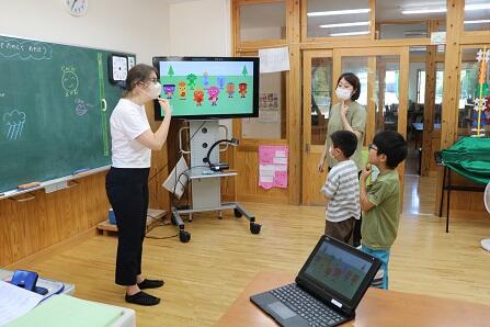 4年生が集合学習に行っている間、いつもは中学年クラスに授業に行くALTの先生が低学年の授業に入ってくださいました。
