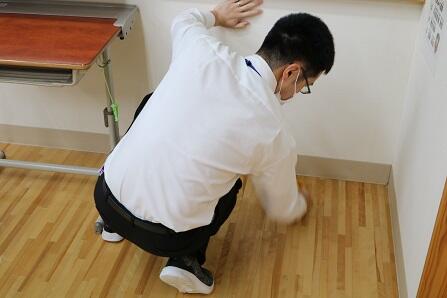5月に実施した体力テストから約2ヶ月経ちました。朝のストレッチ後に柔軟性が向上しているかをチェックすることになりました。簡単にチェックする方法として、立位体前屈をします。