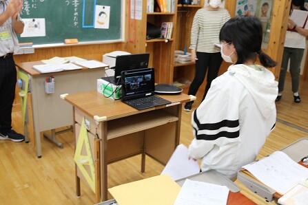 4時間目は、それぞれの授業について、指導主事の先生にご指導いただき、別室では、不土野小学校の紹介として、「遠くへ行こう」のテレビ番組に出たときの様子を視聴していただいたり、ホームページを見ていただいたりしました。そして、学校経営についての説明を校長が行い、教育委員会の方々にご意見をいただきました。