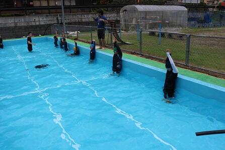 今朝は、職員室前の廊下に黒っぽいかたまりがあり、一瞬びびりましたが、よく見ると沢ガニのようです。川に近いのでプールや校舎によく遊びに来るようです。