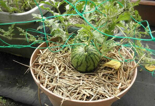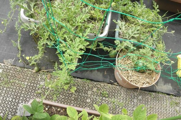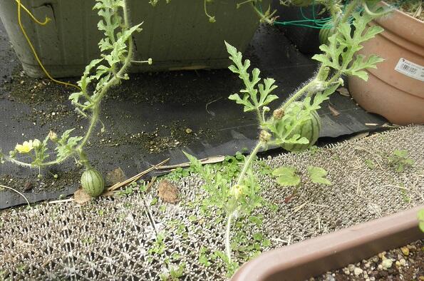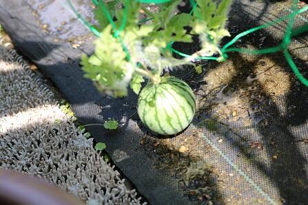 1・2年生のベランダに見たことのあるような実がなっていました。スイカです。まだまだ小さいですが、ちゃんとスイカの模様があります。なんとかわいらしいスイカでしょう。