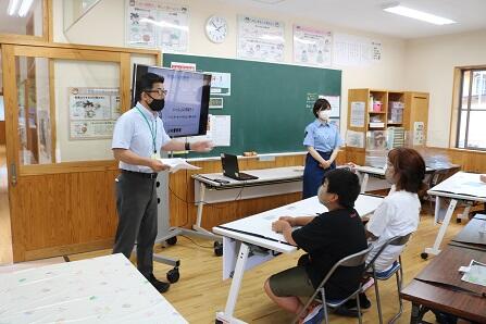 学校保健員会では、日向警察署少年課の方(2名)に来校していただき、「情報モラルについて」のお話をしていただきました。