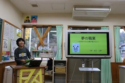 5年生の総合的な学習の時間で「夢の職業」をテーマにした調べ学習を経て、発表会が行われました。