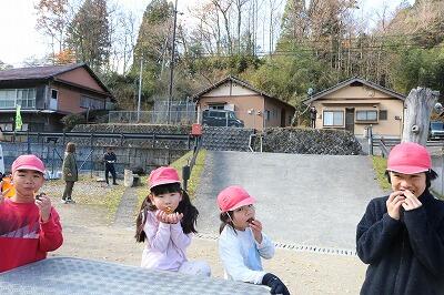 活動の締めくくりは、楽しみにしていた焼き芋です!先日収穫したサツマイモを使い、教頭先生が練習を重ねたという美味しい焼き芋をみんなでいただきました。給食前なのが惜しいほど、甘くてホクホクのご褒美でした。