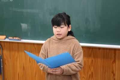 終業式では、1年生と3年生の代表児童が「2学期を振り返って」の作文を読みました。
