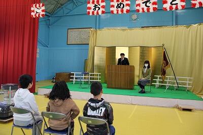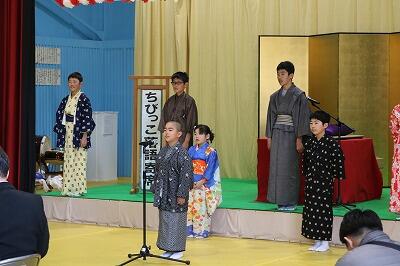 不土野小といえば「ちびっこ落語」の学校としてもおなじみです。全員が披露します。