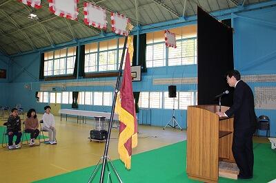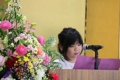 新2年生、新5年生の2人が決意表明をします。勉強を頑張って、1年生のお手本になるということを2年生が発表しました。5年生は、落ち着いて学習に取り組むこと、そして、家と学校との区別をつけて生活することを発表しました。
