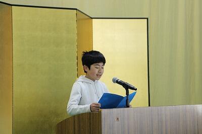 そして、1年間の自分の成長を振り返り、作文発表もありました。2年生が堂々と発表します。