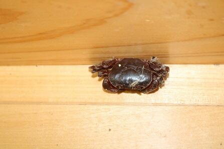 今朝は、職員室前の廊下に黒っぽいかたまりがあり、一瞬びびりましたが、よく見ると沢ガニのようです。川に近いのでプールや校舎によく遊びに来るようです。
