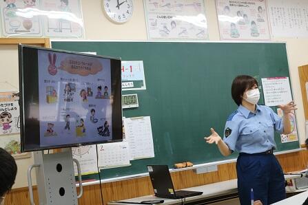 学校保健員会では、日向警察署少年課の方(2名)に来校していただき、「情報モラルについて」のお話をしていただきました。