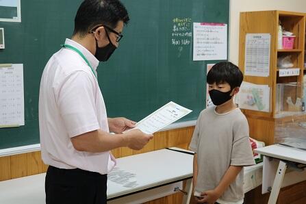 6月のH1グランプリ(はみがきナンバー1)の表彰を受ける児童