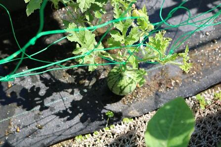 1・2年生のベランダに見たことのあるような実がなっていました。スイカです。まだまだ小さいですが、ちゃんとスイカの模様があります。なんとかわいらしいスイカでしょう。