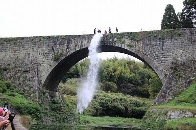 そしていよいよ通潤橋へ。天候が心配でしたが、なんとか雨は降らずに放水の時間を迎えることができました。