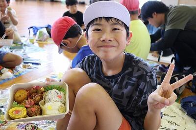 子どもたちが弁当作りにかかわり、楽しく食べる体験をとおして食への関心を高め、生きる力を育むことを目的にしています。