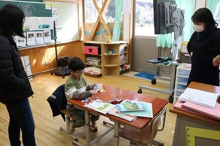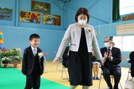 今日は、待ちに待った入学式でした。今年の新入生は1名です。礼儀正しく笑顔のすてきな男の子です。たくさんの来賓の皆様と上級生のお兄さんお姉さん、保護者の皆様、職員に迎えられ、かわいく入場しました。来賓の方々や校長先生のお話もきちんと聞くことができました。