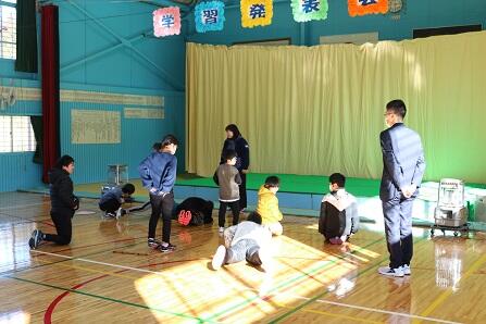 4月12日(火)は不土野小学校の入学式です。今日は、その入学式に向けて全校で練習をしました。新1年生に不土野小のことを分かりやすく説明したり、「落語」や「ひえつき節」、「一輪車」を実際にやってみたりします。みんな1年生の入学をとても楽しみにして待っていま~す。