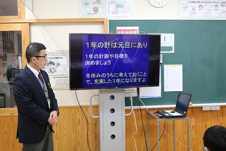 その後、校長先生から「1年の目標とそれを達成するための行動を決めること」の大切さについてお話がありました。