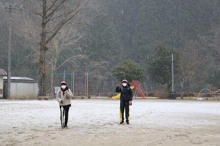 夕方近くになると、ご覧のようににうっすらと雪が運動場に降りました。