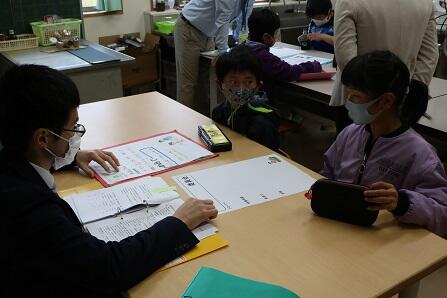 先生の場所が固定していて、そこをローテーションで児童がまわります。