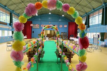 この素敵な会場も、8名の在校児童が頑張って設営しました。