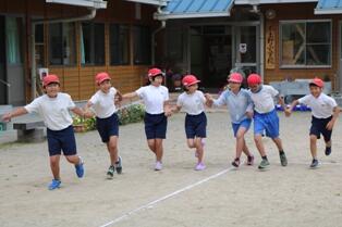 にできるように、上学年が手をつないで一緒に練習をしました。上学年