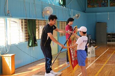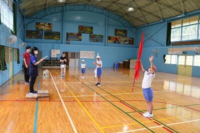 練習では、開会式での優勝旗の返還や、みんなで気持ちを一つにして行うラジオ体操の動きを一つひとつ丁寧に確認しました。