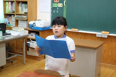 さらに、総合的な学習の時間で取り組んでいる、学校のすぐそばを流れる川の生き物調査の途中経過についても発表。これまでに見つけた魚など、その時の発見や苦労などを詳しく伝えました。