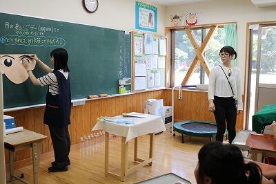 10月10日の「目の愛護デー」に合わせ、養護教諭が子どもたちに目の健康についての授業を行いました。