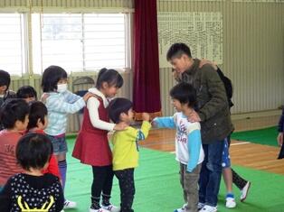 じゃんけん列車や、新聞紙で作った雪を投げ合う雪合戦などで楽しく遊びました。