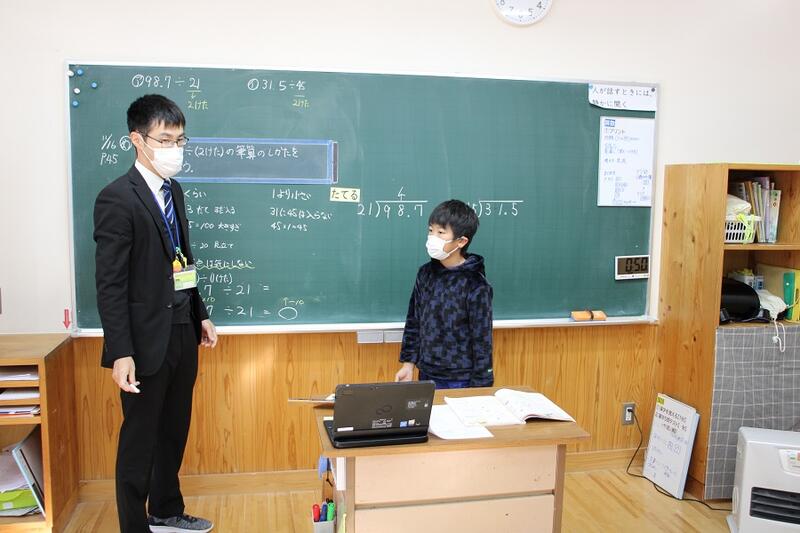 4年生です。4年生は、算数で「小数のわり算」の授業でした。