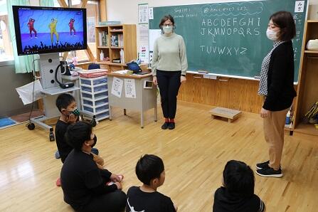 4年生が集合学習に行っている間、いつもは中学年クラスに授業に行くALTの先生が低学年の授業に入ってくださいました。