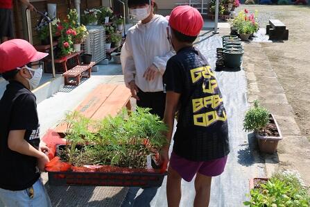 3時間目に全校で栽培活動を行いました。今年は、ひまわり、コスモス、マリーゴールド、日々草、ジニア、ベルサイユミックス、ファイヤーボール、サンダーミックス、サンタスッチックイエロー等を育てます。子ども達は、種の植え方の説明を聞き、ポットに一粒一粒丁寧に種を植えていました。植えた後もみんなで協力しながら運んだり、水やりをしたりしました。これからしっかり成長するように全校で見守り、お世話をしていきます。きれいな花が咲くのが楽しみです。