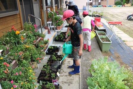 残った時間は、芽から育った花の苗を、大きめのポットに移す作業をしました。