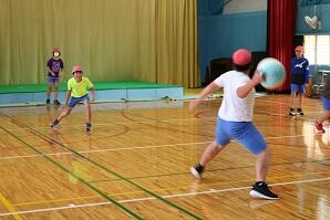 やっぱり体育館から元気な声が聞こえてきました。全校でドッジボールをしているようです。