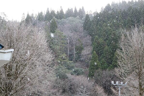 途中雪がやみました。2・3年生は運動場で雪の様子を見に行ったようです。運動場の地面はカチコチに凍っています。